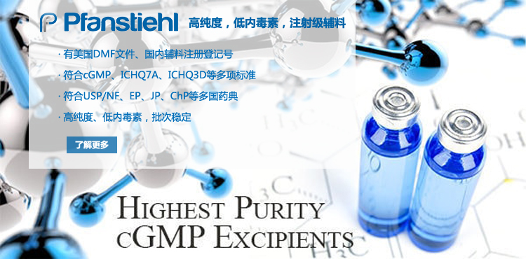 “熱烈祝賀Pfanstiehl的注射級甘氨酸Glycine(G-140)喜獲CDE登記號F20250000403, 這是Pfanstiehl產品獲得的第18個CDE登記號!”甘氨酸在醫藥輔料制劑中應用廣泛,, 可作為緩沖劑,增溶劑,穩定劑等,具有諸多優勢。Pfanstiehl秉承一貫高品質理念,為滿足全球生物制藥行業對于高品質甘氨酸的需求,隆重推出的注射級甘氨酸Glycine (G-140), 具有超高純度,超低內毒素,超低金屬殘留的特點,單獨檢測29種金屬離子,并且新增DNA,RNA,DNA酶,RNA酶和脂肪酶,亞硝酸鹽等多項質量指標的檢測,符合多國藥典規定(USP, EP, BP, JPE, ChP),可用于生物治療性藥物和疫苗的生產。產品信息:· 產品名稱:Glycine, High Purity, Low Endotoxin, Low Metals, USP, EP, BP, JPE, ChP (G-140)· 中文名稱:甘氨酸· 分子式:C2H5NO2· 分子量:75.07 g / mol· CAS號:56-40-6· 產品貨號:G-140產品特點: · 超高純度,超低內毒素,超低微生物含量,超低金屬雜質殘留· 質量指標新增DNA,RNA,DNA酶,RNA酶,脂肪酶和亞硝酸鹽檢測· 符合多國藥典:USP, EP, BP, JPE, ChP· 符合ICH Q3D標準· 符合GMP標準· 已獲DMF和CDE登記號 產品應用:· 緩沖劑· 穩定劑· 增溶劑如果您對Pfanstiehl注射級別Glycine G-140感興趣,歡迎聯系Pfanstiehl 中國區代理商北京西美杰科技有限公司獲得如下詳細的產品概況說明文件和測試樣品。Pfanstiehl Inc.最新產品系列如下,歡迎聯系北京西美杰科技有限公司獲取100g裝免費樣品。北京西美杰科技有限公司為Pfanstiehl中國代理,為客戶提供完善的技術支持與售后服務。歡迎撥打西美杰客服電話400-050-4006或者登陸網站www_xmjsci_com.gogoying.com了解更多信息。 更多>